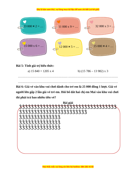 Bài 6: Giá vé vào khu vui chơi dành cho trẻ em là 25 000 đồng 1 lượt. Giá vé
