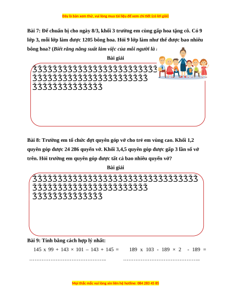 Bài 7: Để chuẩn bị cho ngày 8/3, khối 3 trường em cùng gấp hoa tặng cô. Có 9
