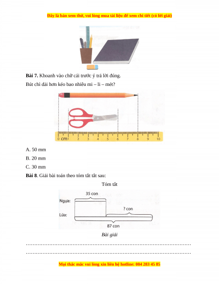 Bút chì dài hơn kéo bao nhiêu mi – li – mét? A. 50 mm B. 20 mm C. 30 mm