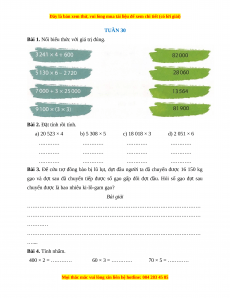 Bài tập cuối tuần Toán lớp 3 Tuần 30 Chân trời sáng tạo (có lời giải)