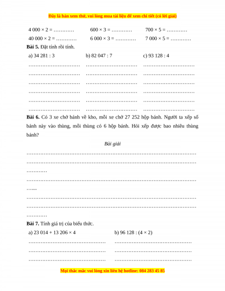 Bài 6. Có 3 xe chở bánh về kho, mỗi xe chở 27 252 hộp bánh. Người ta xếp số