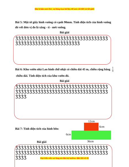 Bài 5: Một tờ giấy hình vuông có cạnh 90mm. Tính diện tích của hình vuông