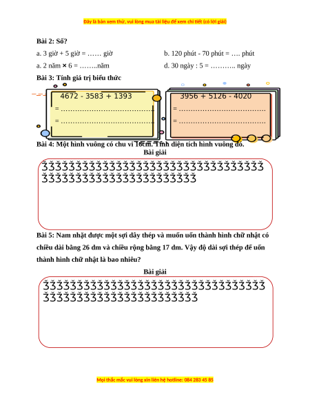 a. 2 năm × 6 = ……..năm d. 30 ngày : 5 = ……….. ngày