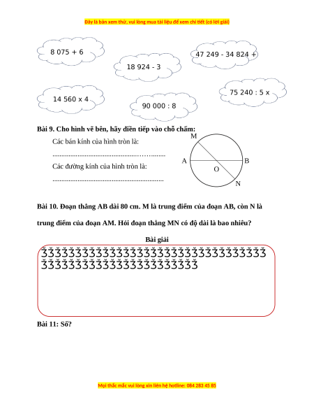 Bài 10. Đoạn thẳng AB dài 80 cm. M là trung điểm của đoạn AB, còn N là