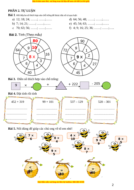 Bài 5. Nối đúng để giúp các chú ong về tổ em nhé! 7 × 4 × 6 8 × 10 9 × 8 × 4 9 5 8 × 9 × 7 5 < > 40 = 40 40