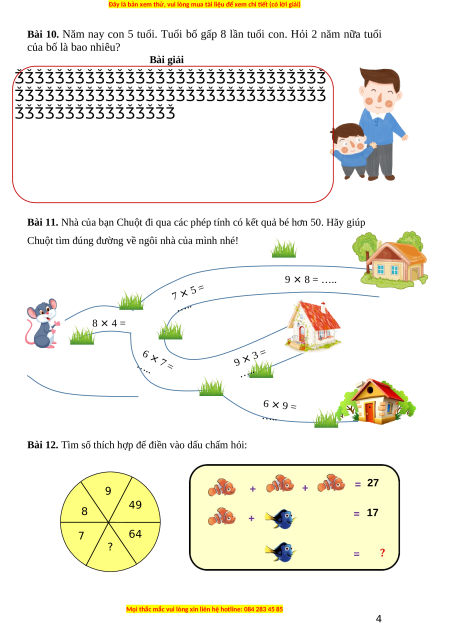 Bài 11. Nhà của bạn Chuột đi qua các phép tính có kết quả bé hơn 50. Hãy giúp