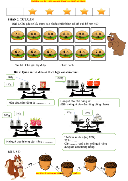 Bài 2. Quan sát và điền số thích hợp vào chỗ chấm: 200g 200g 150g
