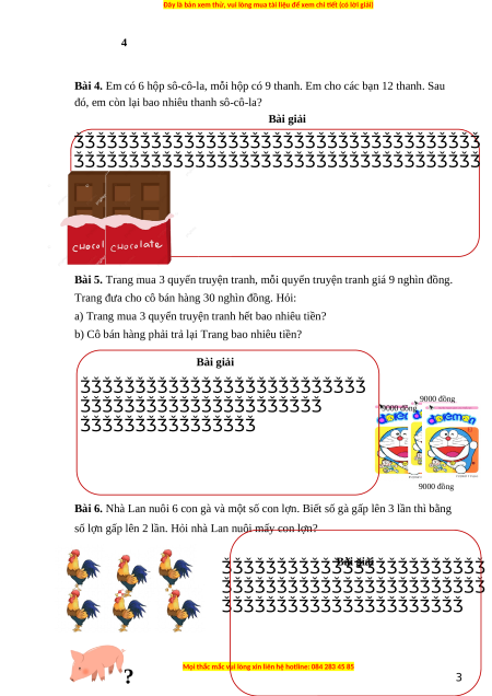 Bài 4. Em có 6 hộp sô-cô-la, mỗi hộp có 9 thanh. Em cho các bạn 12 thanh. Sau