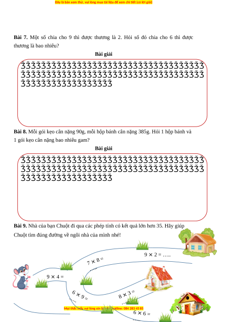Bài 7. Một số chia cho 9 thì được thương là 2. Hỏi số đó chia cho 6 thì được thương là bao nhiêu? Bài giải