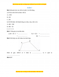 Hình tứ giác ABCD có 4 đỉnh là ………………… và 4 cạnh là ……………………….. Bài 4.Số?