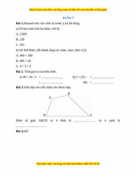 Đây là bản xem thử, vui lòng mua tài liệu để xem chi tiết (có lời giải)