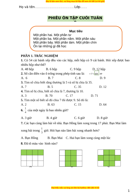 PHIẾU ÔN TẬP CUỐI TUẦN 9 Mục tiêu