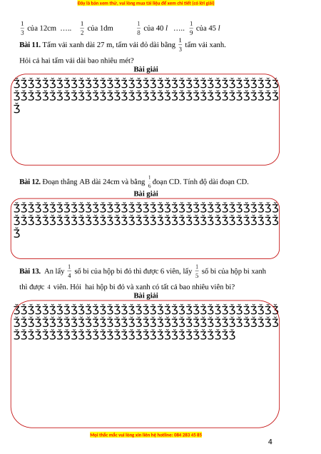 Bài 11. Tấm vải xanh dài 27 m, tấm vải đỏ dài bằng tấm vải xanh.