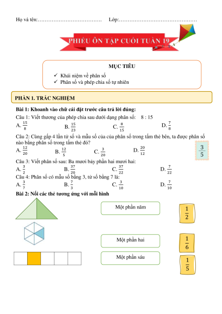PHIẾU ÔN TẬP CUỐI TUẦN 19 MỤC TIÊU