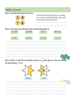 Bài 5: Chọn phân số thích hợp là thương của các phép chia: 7 6 : 5 3 19 4 : 7 8 6 19 : 8 5 4 7 : 3 7 PHẦN 2. TỰ LUẬN
