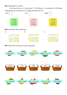 Bài 2: Giá tiền của các vật dụng cần để tắm cho thú cưng như sau: 175 000 đồng 35 000 đồng 50 000 đồng 238 000 đồng 12 000 đồng