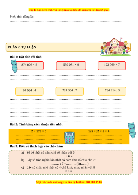 Bài 1: Đặt tính rồi tính 874 026 × 5 530 061 × 9 123 769 × 7