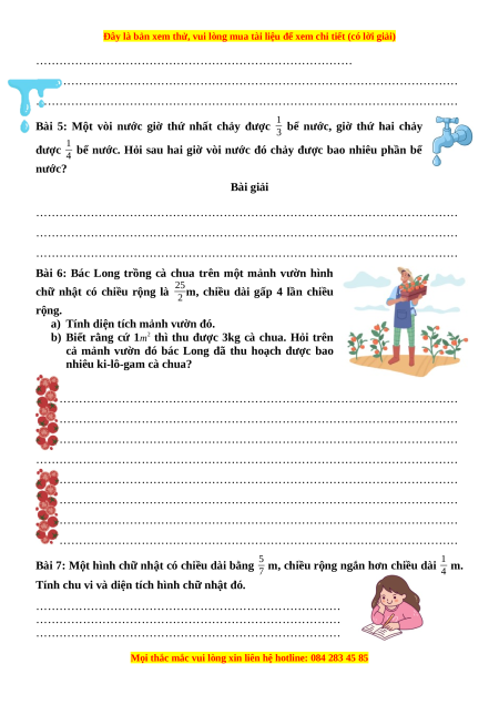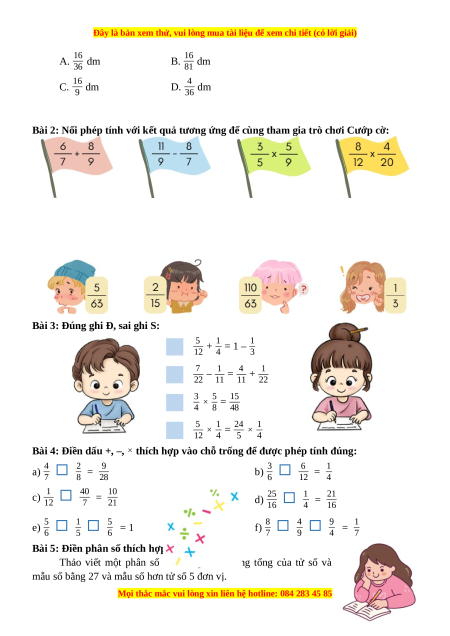 Bài 5: Điền phân số thích hợp vào chỗ trống: