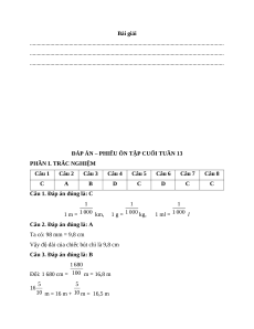 ĐÁP ÁN – PHIẾU ÔN TẬP CUỐI TUẦN 13