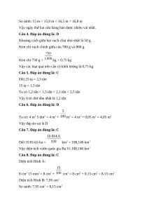 Câu 3. Đáp án đúng là: B Đổi: 1 680 cm = m = 16,8 m m = 16 m + m = 16,5 m