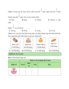 Câu 6. Trong cuộc thi chạy 100 m, Hiếu chạy hết phút, Quân chạy hết phút,