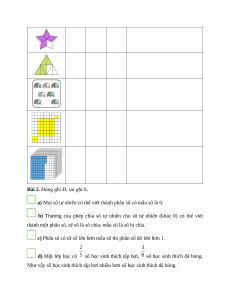 Câu 2. Có bao nhiêu phân số nhỏ hơn 1 có tổng của tử số và mẫu số bằng 10. A. 4 B. 5 C. 10 D. 6