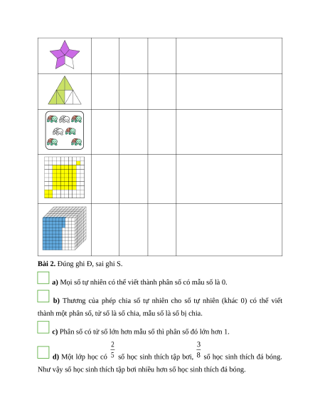 Bài 2. Đúng ghi Đ, sai ghi S.