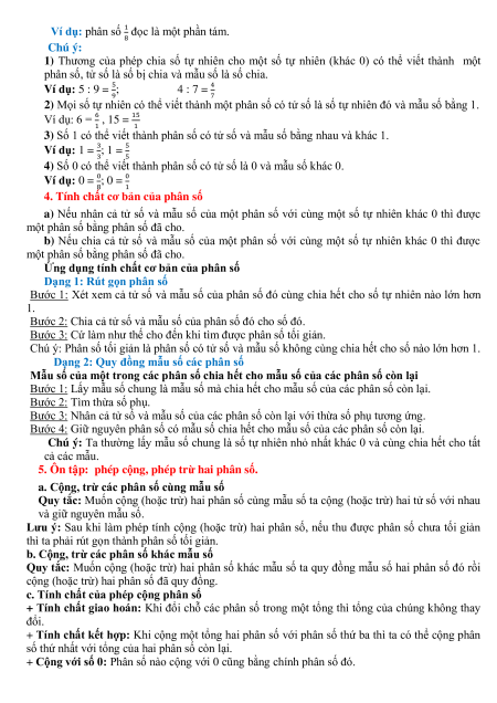 + Cộng với số 0: Phân số nào cộng với 0 cũng bằng chính phân số đó.