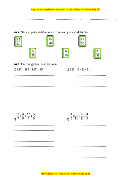 Bài 7. Nối các phân số bằng nhau trong các phân số dưới đây.