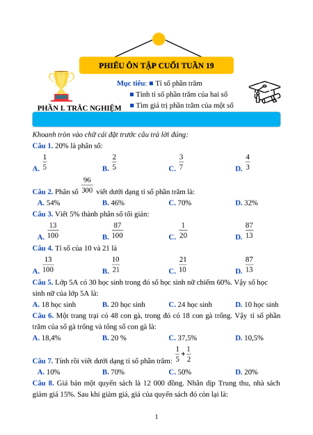 PHIẾU ÔN TẬP CUỐI TUẦN 19
