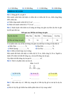 giảm giá 15%. Sau khi giảm giá, giá của quyển sách đó còn lại là: 1 A. 6 500 đồng B. 10 200 đồng C. 12 000 đồng D. 6 000 đồng PHẦN II. TỰ LUẬN