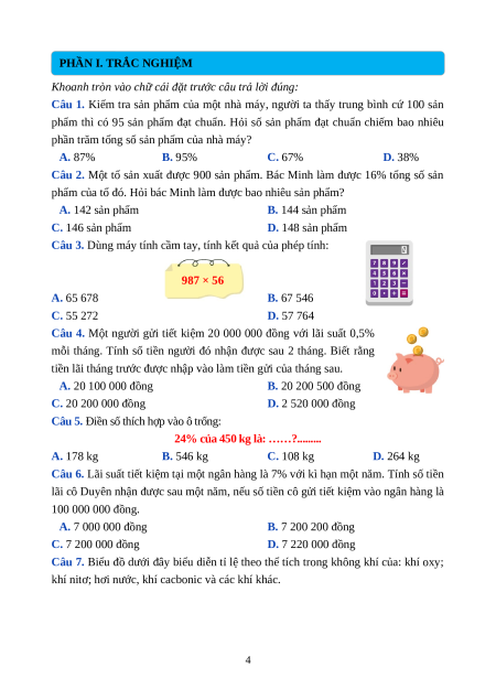 Câu 4. Một người gửi tiết kiệm 20 000 000 đồng với lãi suất 0,5%