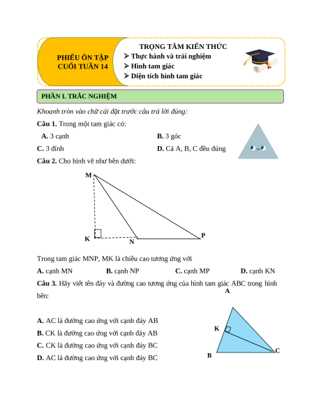 Thực hành và trải nghiệm CUỐI TUẦN 14 Hình tam giác
