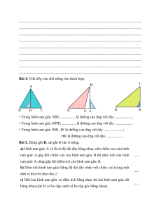 c) Nếu hai hình tam giác có diện tích bằng nhau thì hai hình tam giác đó .....