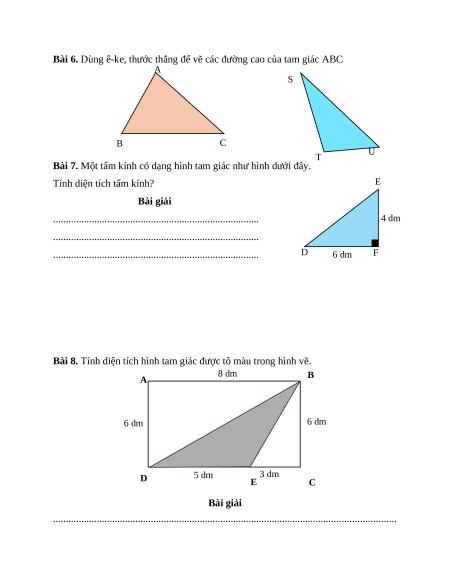 b) Diện tích hình tam giác bằng độ dài đáy nhân với chiều cao (cùng một .....