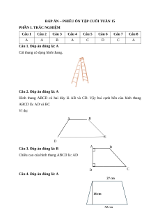 Câu 2. Hình thang ABCD có hai đáy là AB và CD. Vậy hai cạnh bên của hình thang ABCD là: A. AD và BC B. AC và BD C. AD và BD D. AC và BC