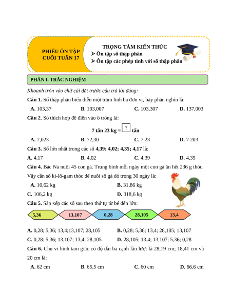 Vậy cần số ki-lô-gam thóc để nuôi số gà đó trong 30 ngày là: A. 10,62 kg B. 31,86 kg C. 106,2 kg D. 318,6 kg