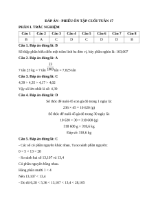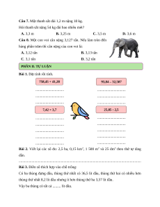 hàng phần trăm thì cân nặng của con voi là: A. 3,12 tấn B. 3,13 tấn C. 3,1 tấn D. 3,2 tấn PHẦN II. TỰ LUẬN