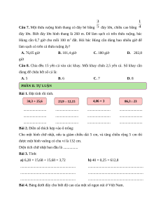dùng để chứa hết số cá là: A. 5 B. 6 C. 7 D. 8 PHẦN II. TỰ LUẬN
