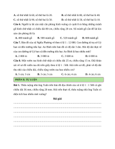 thu nhỏ của chiều dài, chiều rộng vườn rau bao nhiêu cm? A. 5 cm; 3 cm B. 3 cm; 5 cm C. 6 cm; 4 cm D. 4 cm; 6 cm PHẦN II. TỰ LUẬN