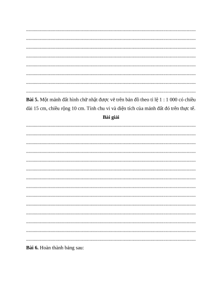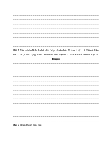 Bài 5. Một mảnh đất hình chữ nhật được vẽ trên bản đồ theo tỉ lệ 1 : 1 000 có chiều
