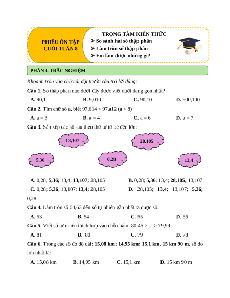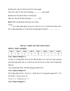 ĐÁP ÁN - PHIẾU ÔN TẬP CUỐI TUẦN 8