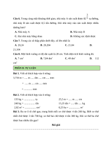 Câu 5. Diện tích ô cửa sổ nhà em khoảng: A. 2,5 km2 B. 2,5 ha C. 2,5 m2 D. 2,5 cm2