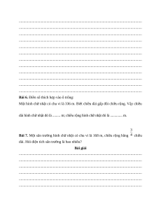 Bài 7. Một sân trường hình chữ nhật có chu vi là 168 m, chiều rộng bằng chiều
