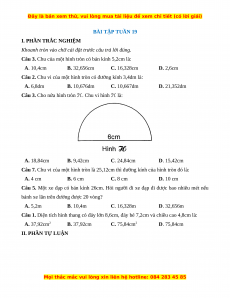 Câu 3. Chu của một hình tròn có bán kính 5,2cm là: A. 10,4cm B. 32,656cm C. 16,328cm D. 2,6cm