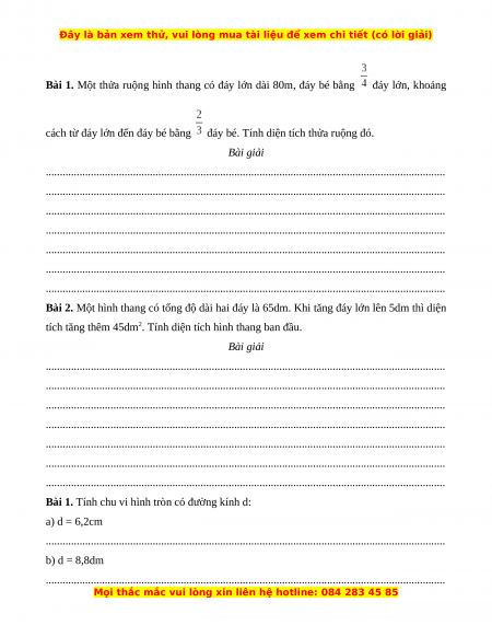 Bài 1. Một thửa ruộng hình thang có đáy lớn dài 80m, đáy bé bằng đáy lớn, khoảng