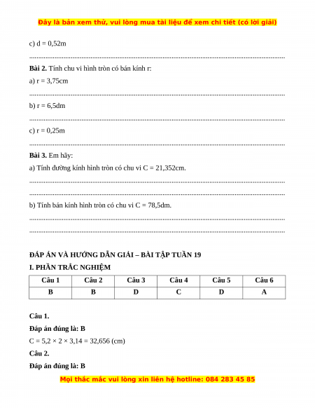 Bài 1. Tính chu vi hình tròn có đường kính d: a) d = 6,2cm