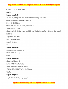 163,28 × 20 = 3265,6 (cm) = 32,656 (m) Câu 6. Đáp án đúng là: A