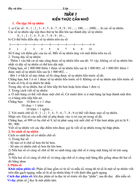 Họ và tên:………………………………..Lớp………… TUẦN 1 KIẾN THỨC CẦN NHỚ