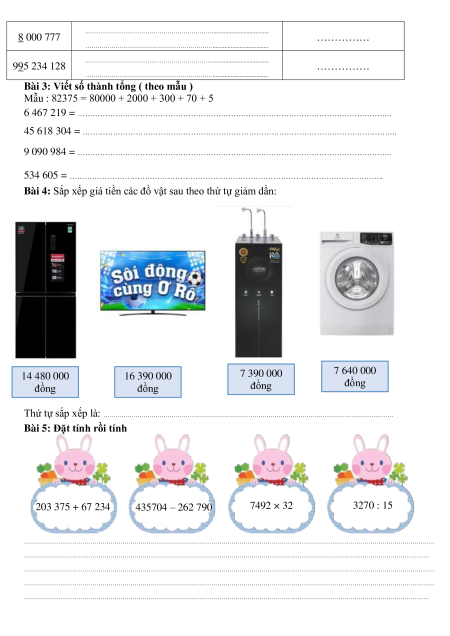 Bài 3. Điền số thích hợp vào chỗ chấm: